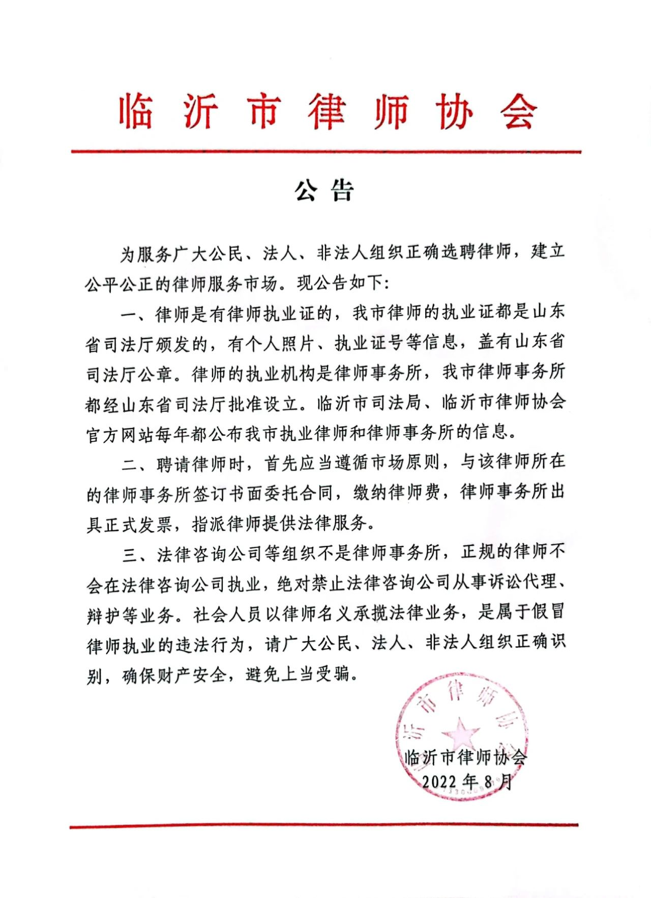 律师事务所和律师属于司法局监督管理,法律咨询服务公司等机构不属于司法局监督管理,律师到法律咨询服务公司等机构坐班执业是违反《律师法》相关规定的违法执业行为,现将临沂市律师事务所的基本情况予以公开,同时将监督、服务、投诉联系方式进行公开,接受广大公民,各类法人和非法人组织的监督。